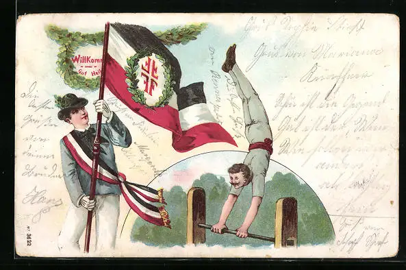 Lithographie Hamburg, IX. deutsches Turnfest 1898, Reckturner