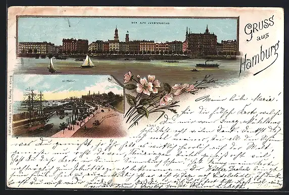 Lithographie Hamburg-Neustadt, Der Alte Jungfernstieg, St. Pauli