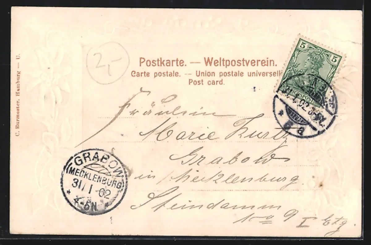 gelaufen 1902, Bugspur li. oben, guter Zustand