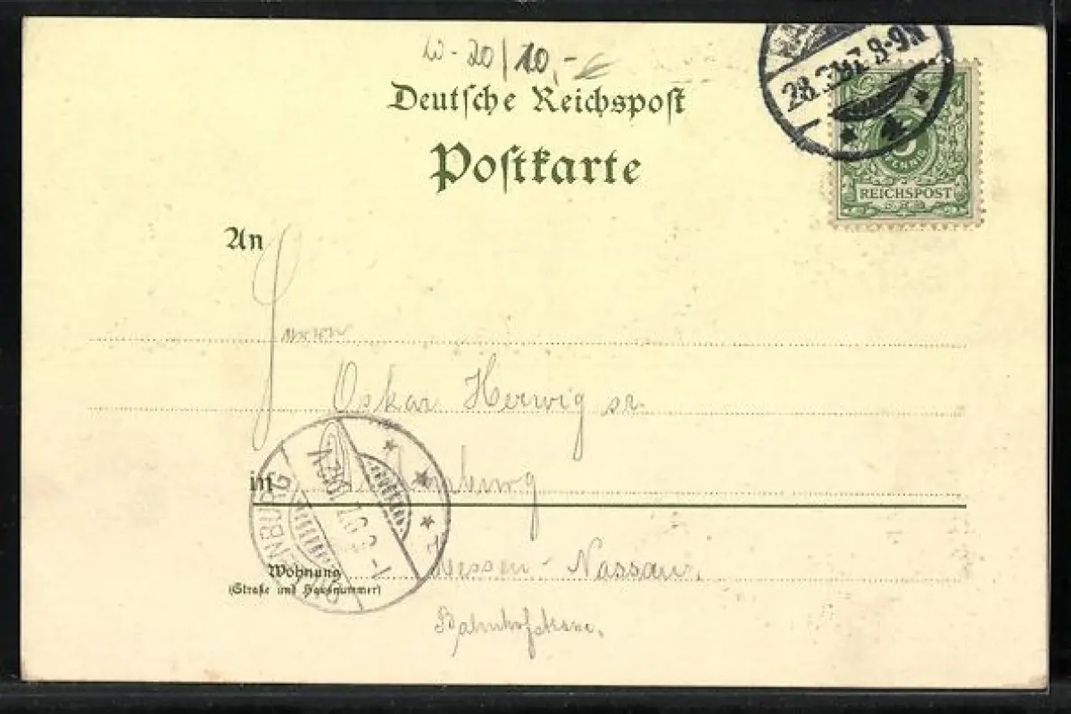 gelaufen 1897, Eckknick links unten, guter Zustand