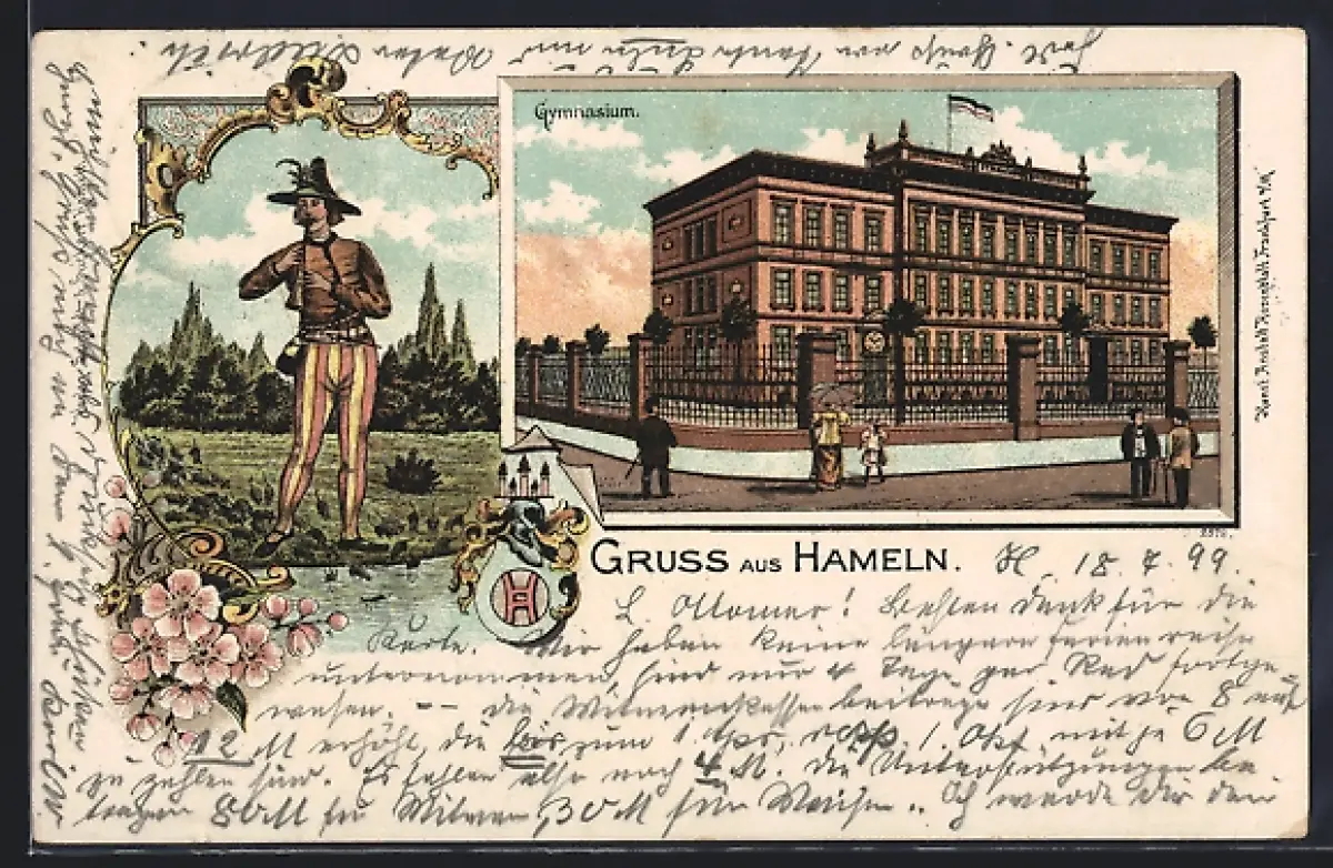 Lithographie Hameln, Gymnasium, Rattenfänger
