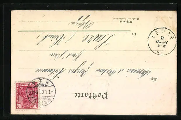 gelaufen 1901, Eckknicke oben, guter Zustand