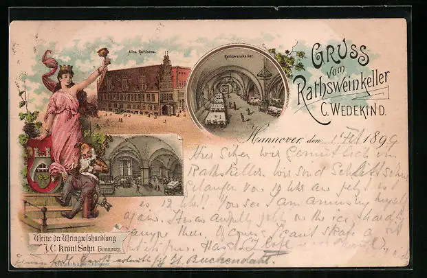 Lithographie Hannover, Rathsweinkeller, Altes Rathaus
