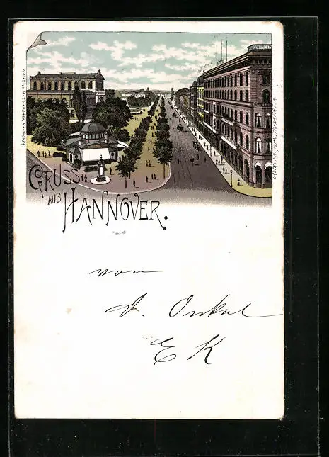 Lithographie Hannover, Strassenpartie aus der Vogelschau