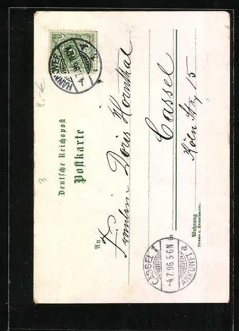 gelaufen 1896, Eckknick oben li., guter Zustand