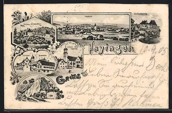 Lithographie Hayingen, Rathaus, Bildhauerei, Stadtkirche
