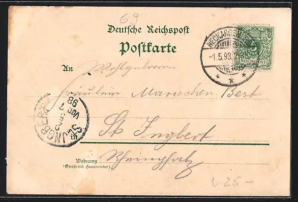gelaufen 1898, Albumspuren, Eckknick oben re., Ecken bestoßen, guter Zustand