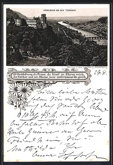Lithographie Heidelberg / Neckar, Ort von der Terrasse