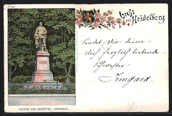 Lithographie Heidelberg, Victor von Scheffel-Denkmal