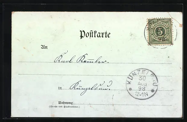 gelaufen 1898, Eckknicke li. oben und re. unten, guter Zustand