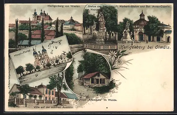 Lithographie Heiligenberg, Ansicht von oben, Kirchenportal, St. Anna Kapelle, Villa der schönen Aussicht