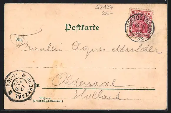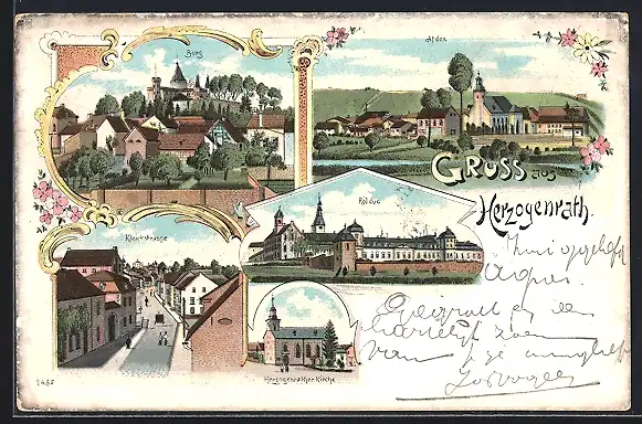 Lithographie Herzogenrath, Kleickstrasse, Rol duc, Teilansicht mit Burg, Arden