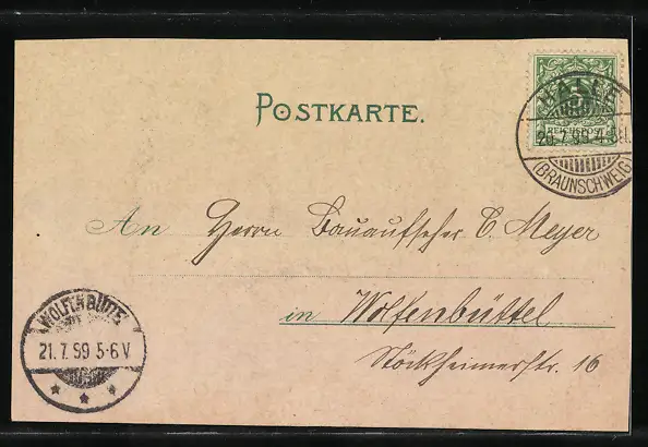 gelaufen 1899, li. und obere Kante beschnitten