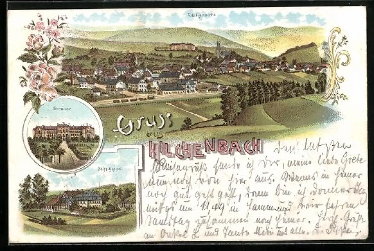 Lithographie Hilchenbach, Seminar, Stift-Keppel und Totalansicht