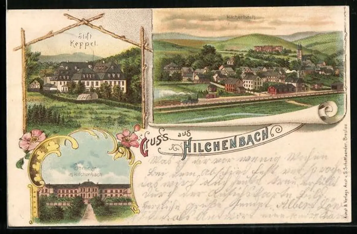 Lithographie Hilchenbach, Stift Keppel, Seminar, Gesamtansicht
