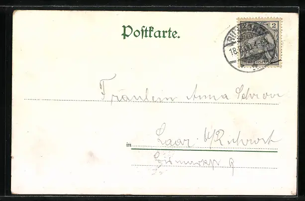 gelaufen 1900, kleiner Einriss re. unten, guter Zustand