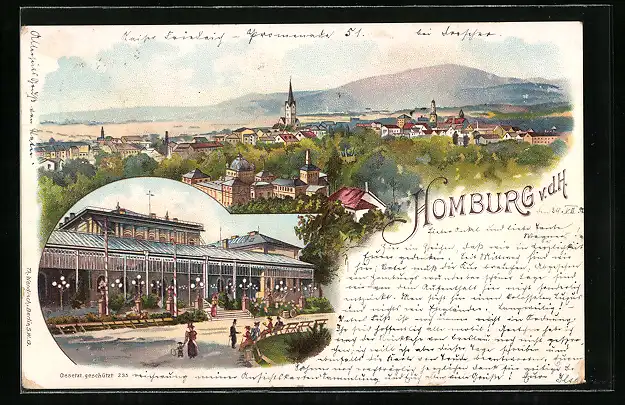 Lithographie Homburg v. d. H., Teilansicht, Gebäudeansicht