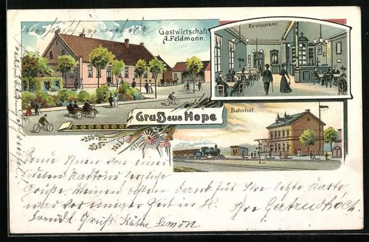 Lithographie Hope / Fallingbostel, Gasthaus von A. Feldmann, Bahnhof
