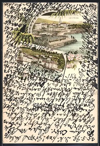 Lithographie Ika, Ortsansicht an der Küste, Blick auf Lovrana