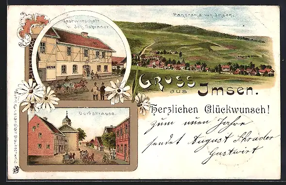 Lithographie Imsen, Gastwirtschaft v. Joh. Schrader, Dorfstrasse