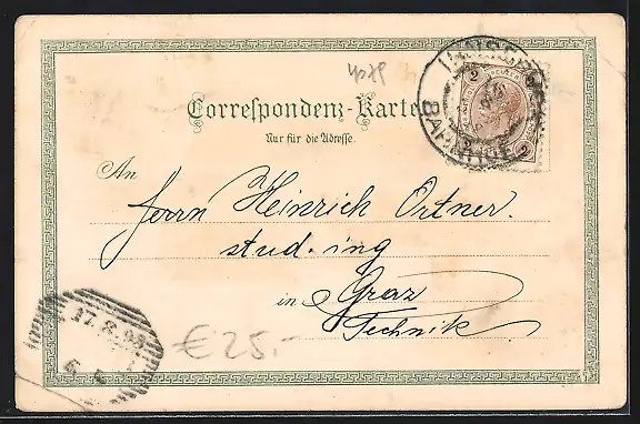 gelaufen 1898, Eckknicke li. und re., guter Zustand
