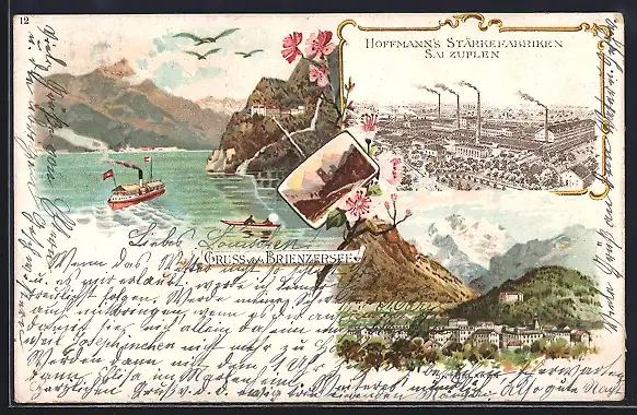 Lithographie Interlaken, Hoffmann`s Stärkefabriken in Salzuflen, Partie am Brienzersee