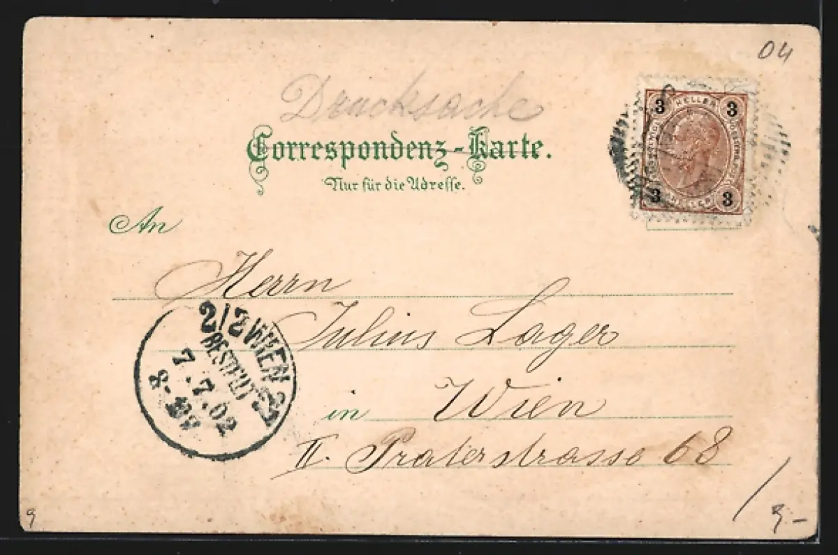 gelaufen 1902, minimale Einrisse re. oben, guter Zustand