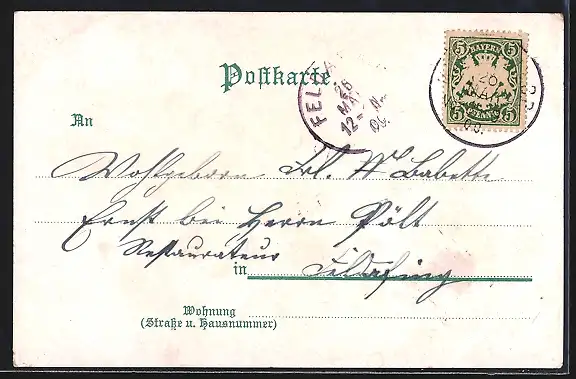 gelaufen 1900, Eckknick re. unten, guter Zustand