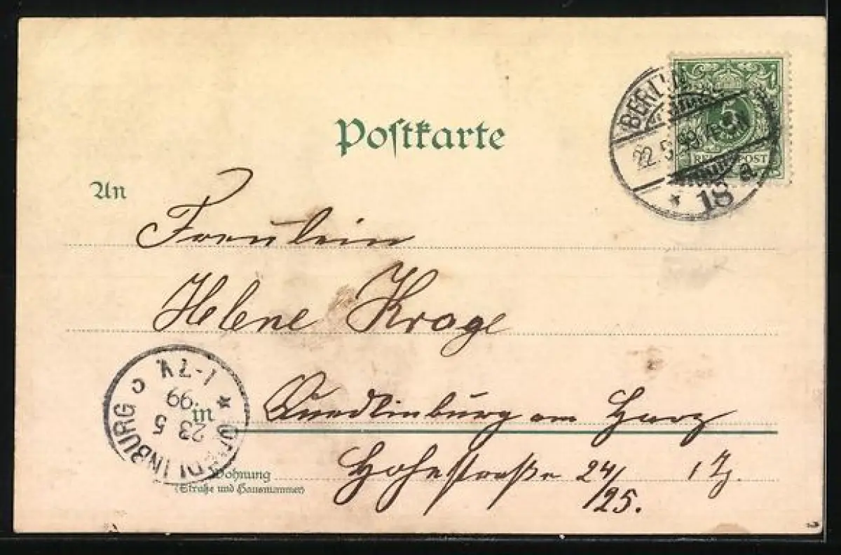 gelaufen 1899, Stempelspur, Eckknick rechts oben, guter Zustand