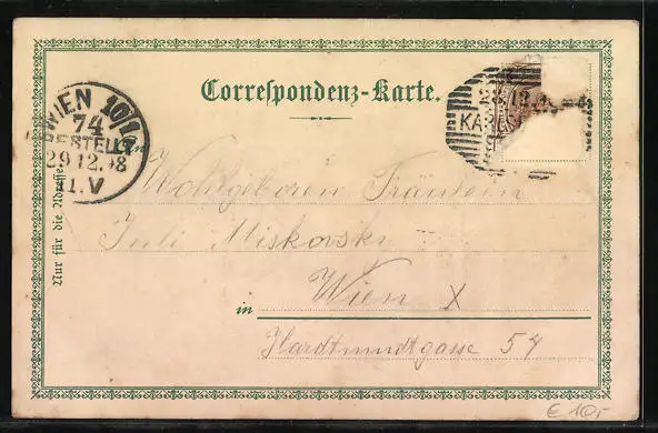 gelaufen 1898, Briefmarke entfernt, rückseitig Klebe- und Papierreste, guter Zustand