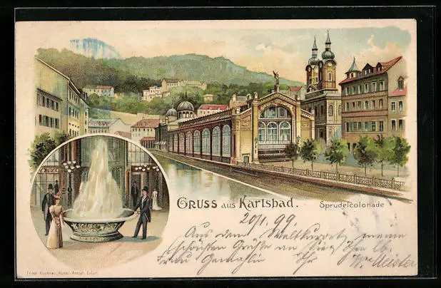 Lithographie Karlsbad, Blick auf Sprudelcolonade