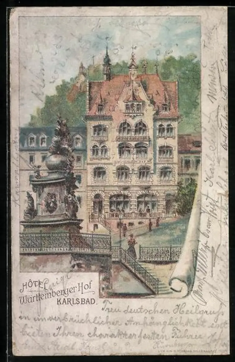 Lithographie Karlsbad, Hotel Württembergischer Hof