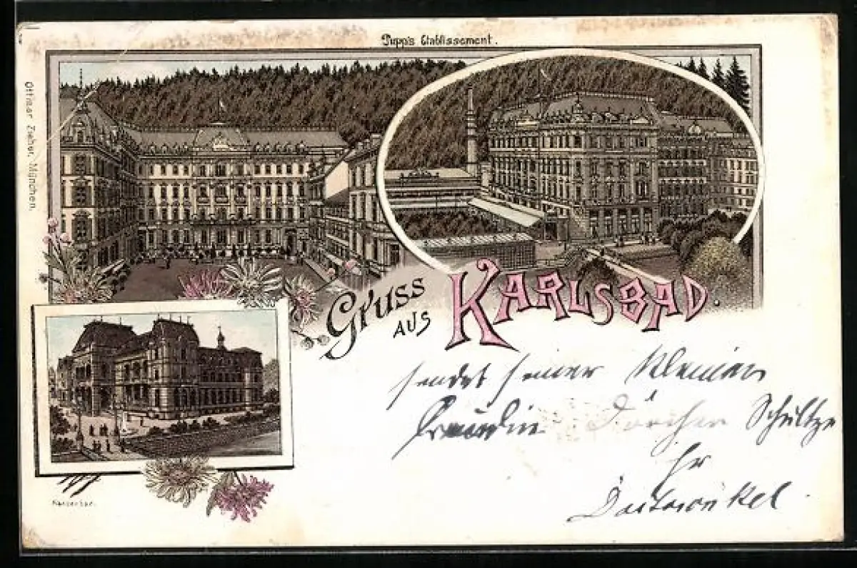 Lithographie Karlsbad, Restaurant Pupp`s Etablissement, Kaiserbad