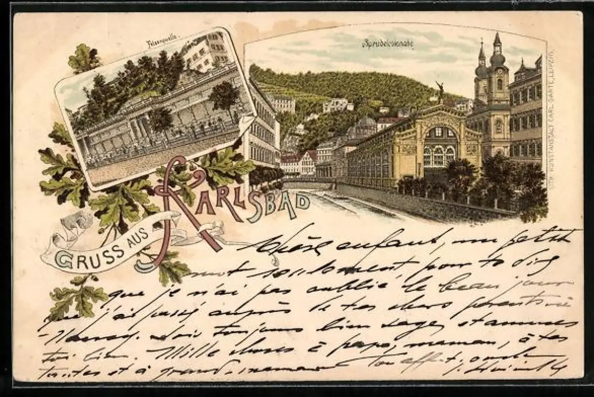 Lithographie Karlsbad, Sprudelcolonade, Felsenquelle