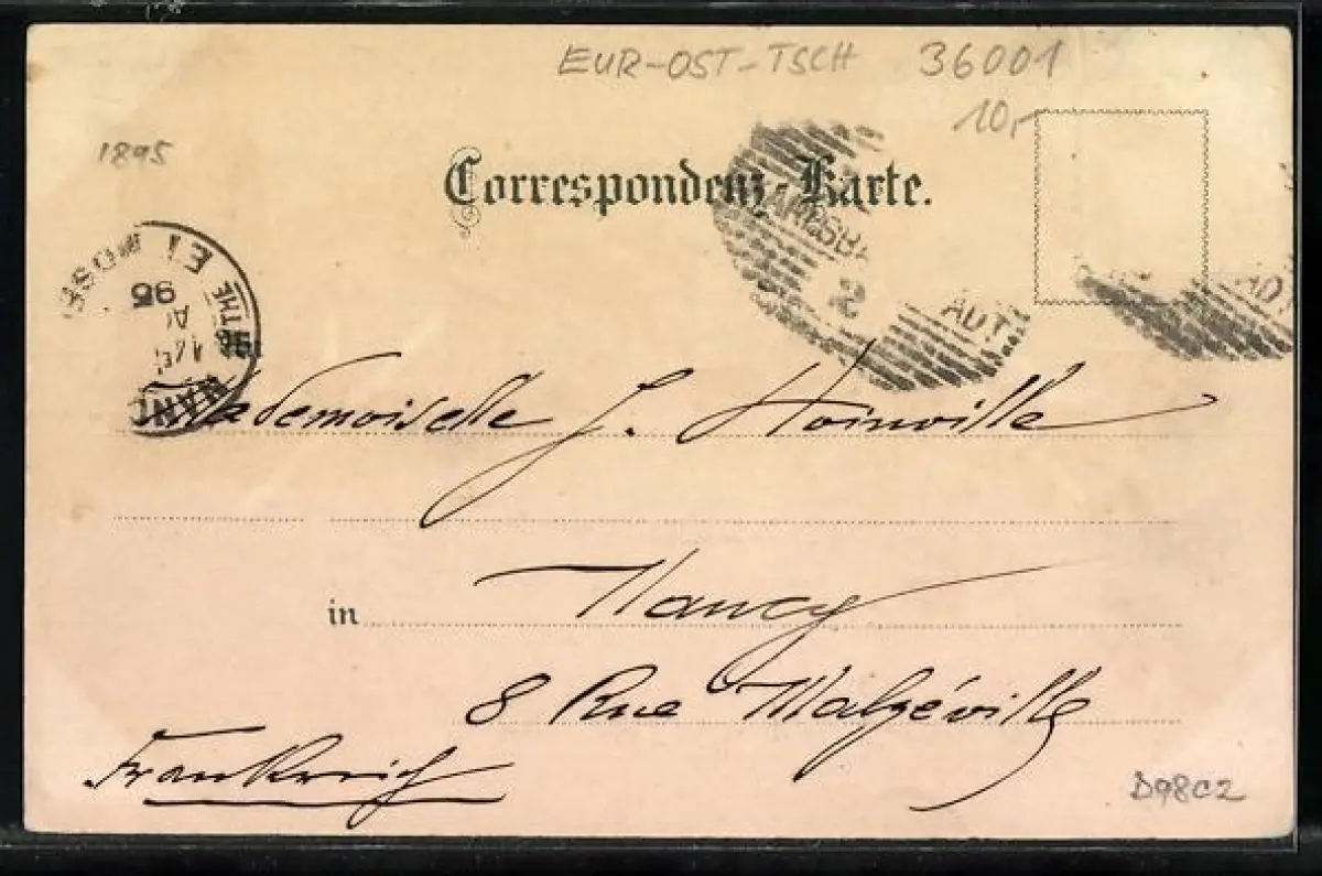 gelaufen 1895, Briefmarke entfernt, Bugspur links oben, rückseitig Oberflächenschaden, sonst guter Zustand