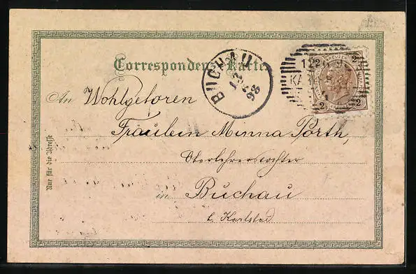 gelaufen 1898, Eckknick li. unten, Stempelspur, Bugspur re. unten, guter Zustand