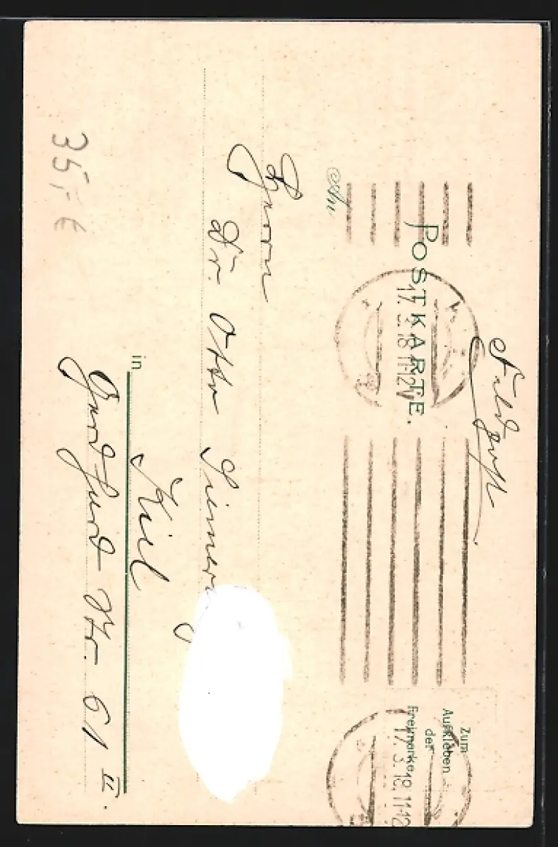 gelaufen 1918, rückseitig Klebe- und Papierreste, guter Zustand