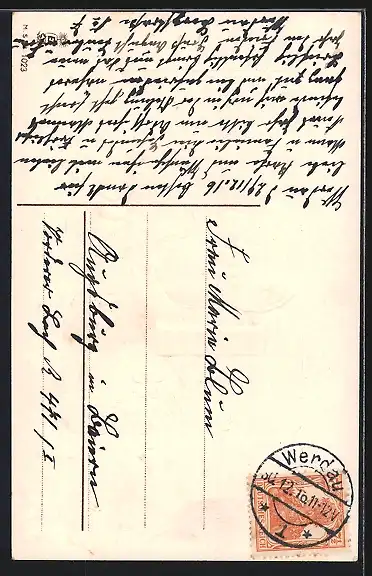 gelaufen 1916, Eckknick re. unten, guter Zustand