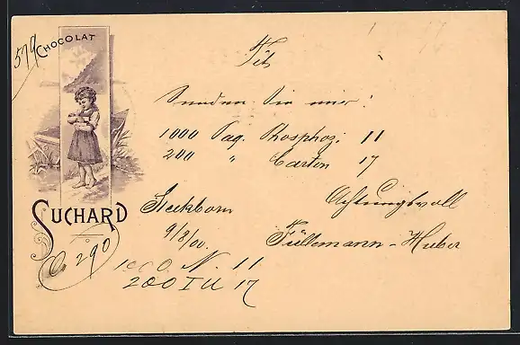 Lithographie Kleines Mädchen im Bergpanorama mit Chocolat Suchard