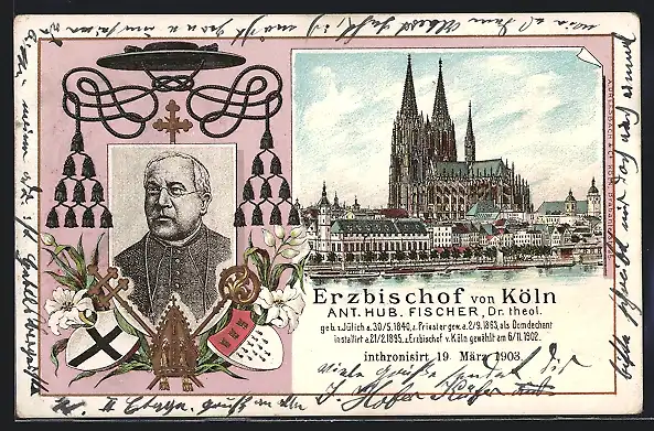 Lithographie Köln, Dom, Erzbischof Ant. Hub. Fischer