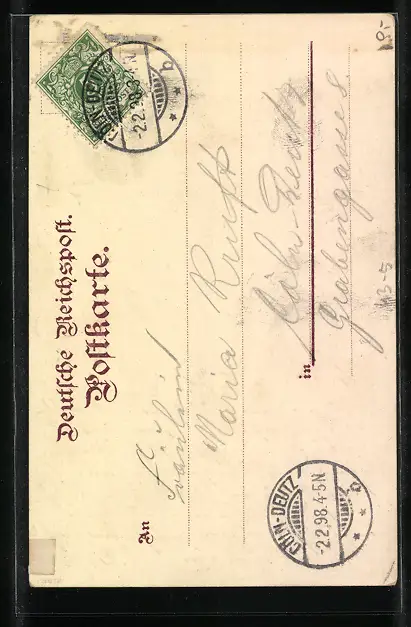 gelaufen 1898, rückseitig Klebe- und Papierreste, guter Zustand