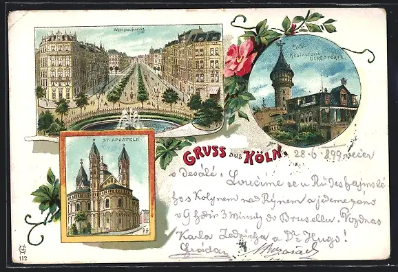 Lithographie Köln-Neustadt, Café-Restaurant Ulrepforte, Hohenstaufenring, St. Aposteln