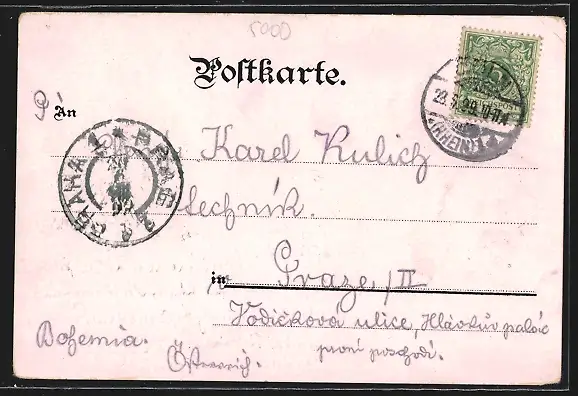 gelaufen 1899, Eckknick oben li., guter Zustand