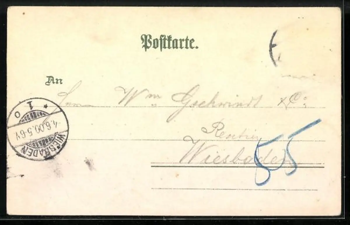 gelaufen 1900, Briefmarke entfernt, guter Zustand