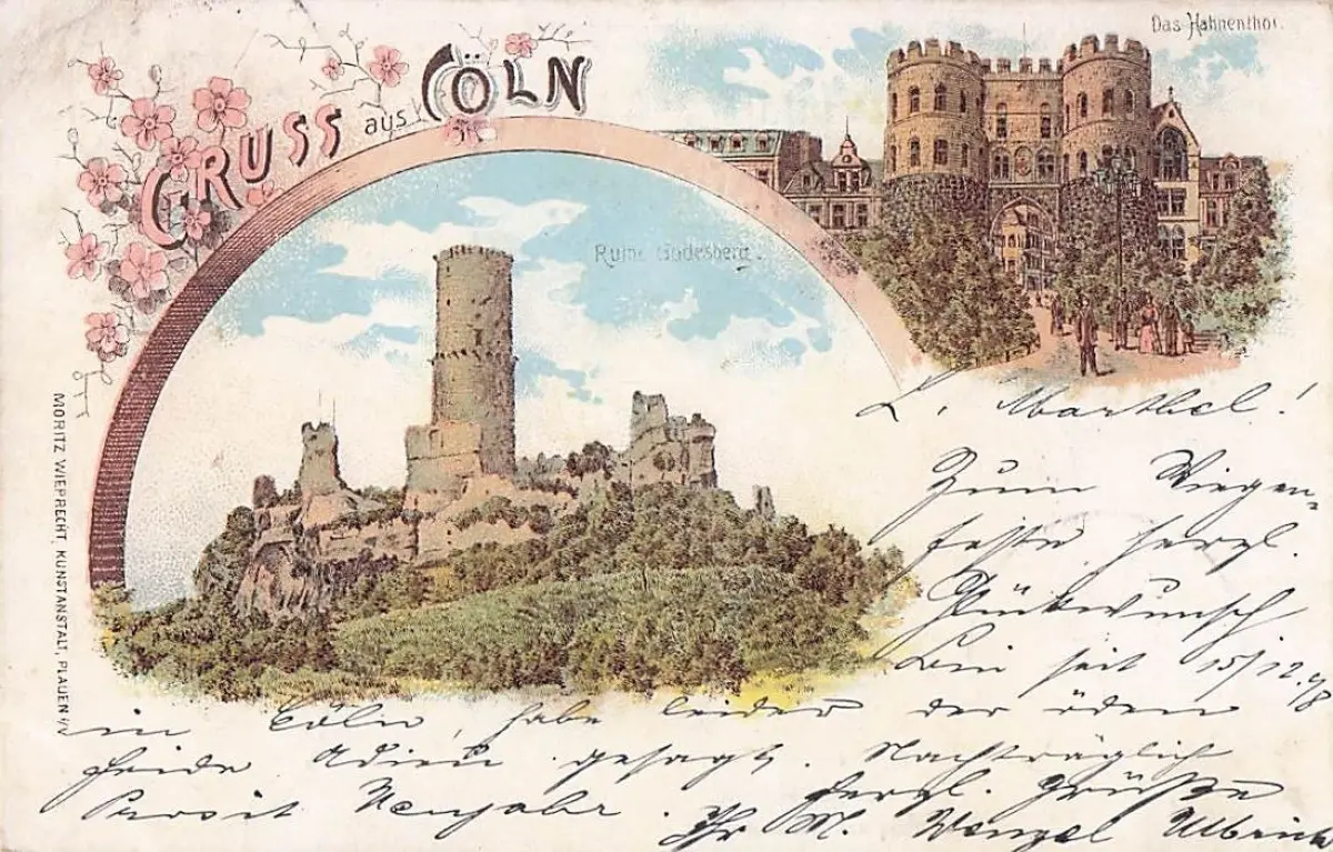 Lithographie Köln, Ruine Godesberg, Hahnentor -800194