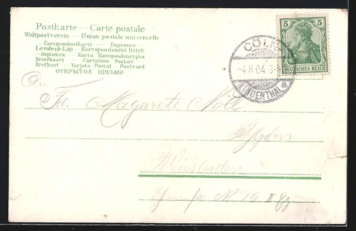 gelaufen 1904, Eckknick unten li., geklebter Einriss li. unten, Stempelspur, guter Zustand