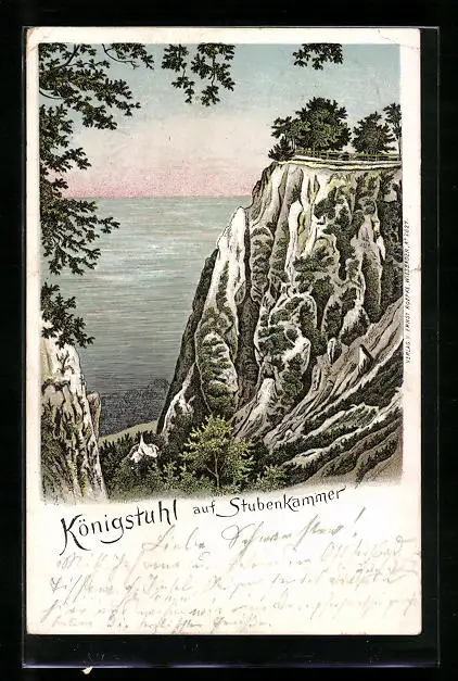 Lithographie Königstuhl /Stubenkammer, Blick aufs Wasser mit Felsvorsprüngen