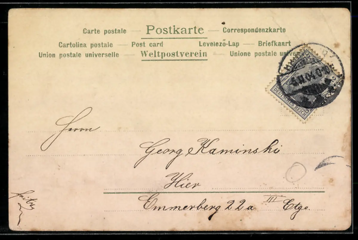 gelaufen 1904, Eckknick li. oben, Bugspur li. oben, guter Zustand