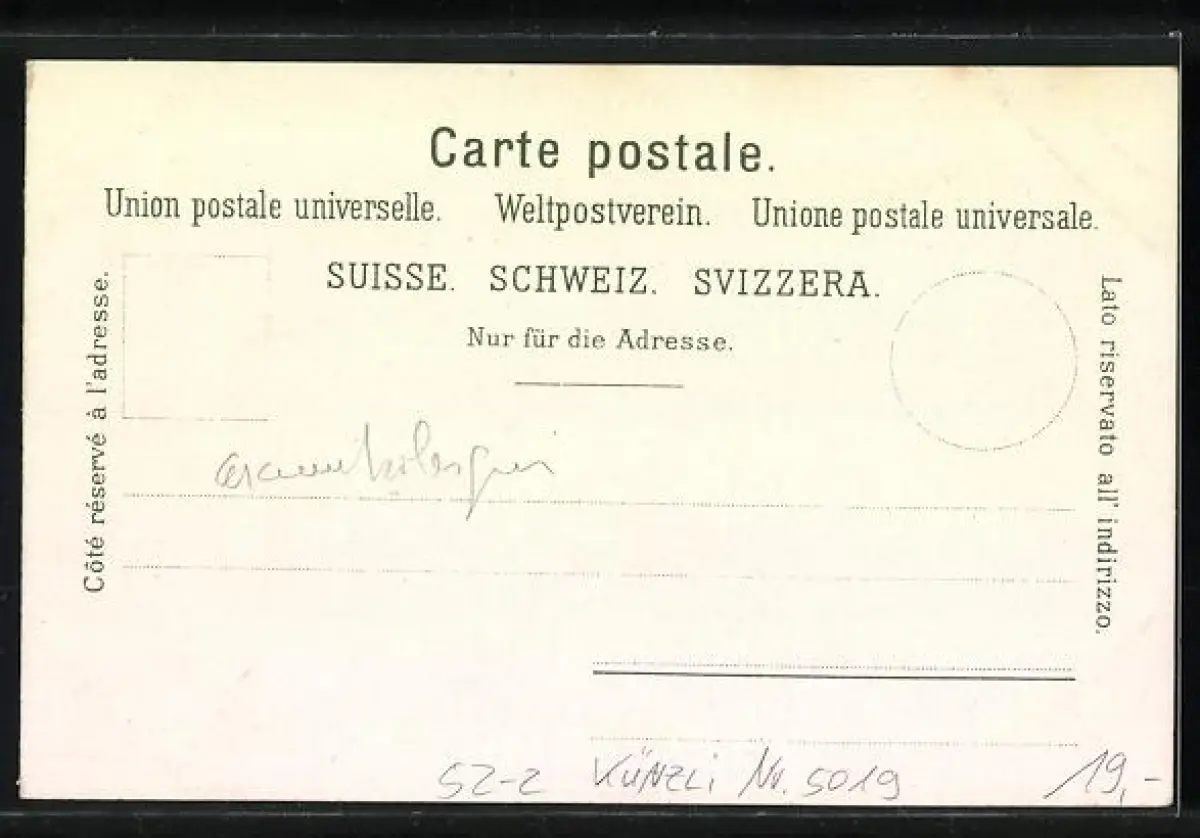 Lithographie Künzli Nr. 5019: Montreux sur le Lac Léman et la Dent du Midi, Berg mit Gesicht / Berggesichter