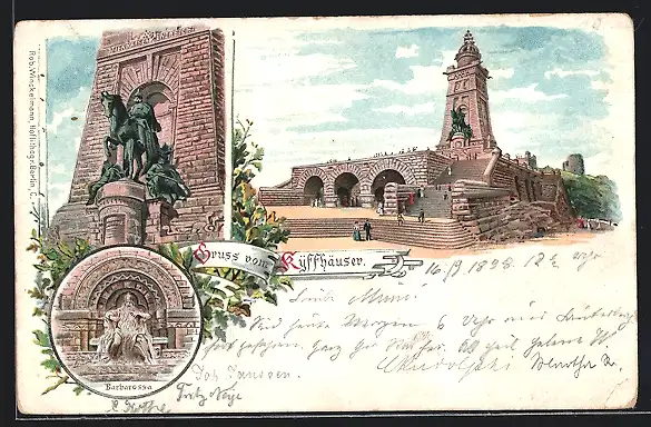 Lithographie Kyffhäuser, Denkmal und Barbarossa